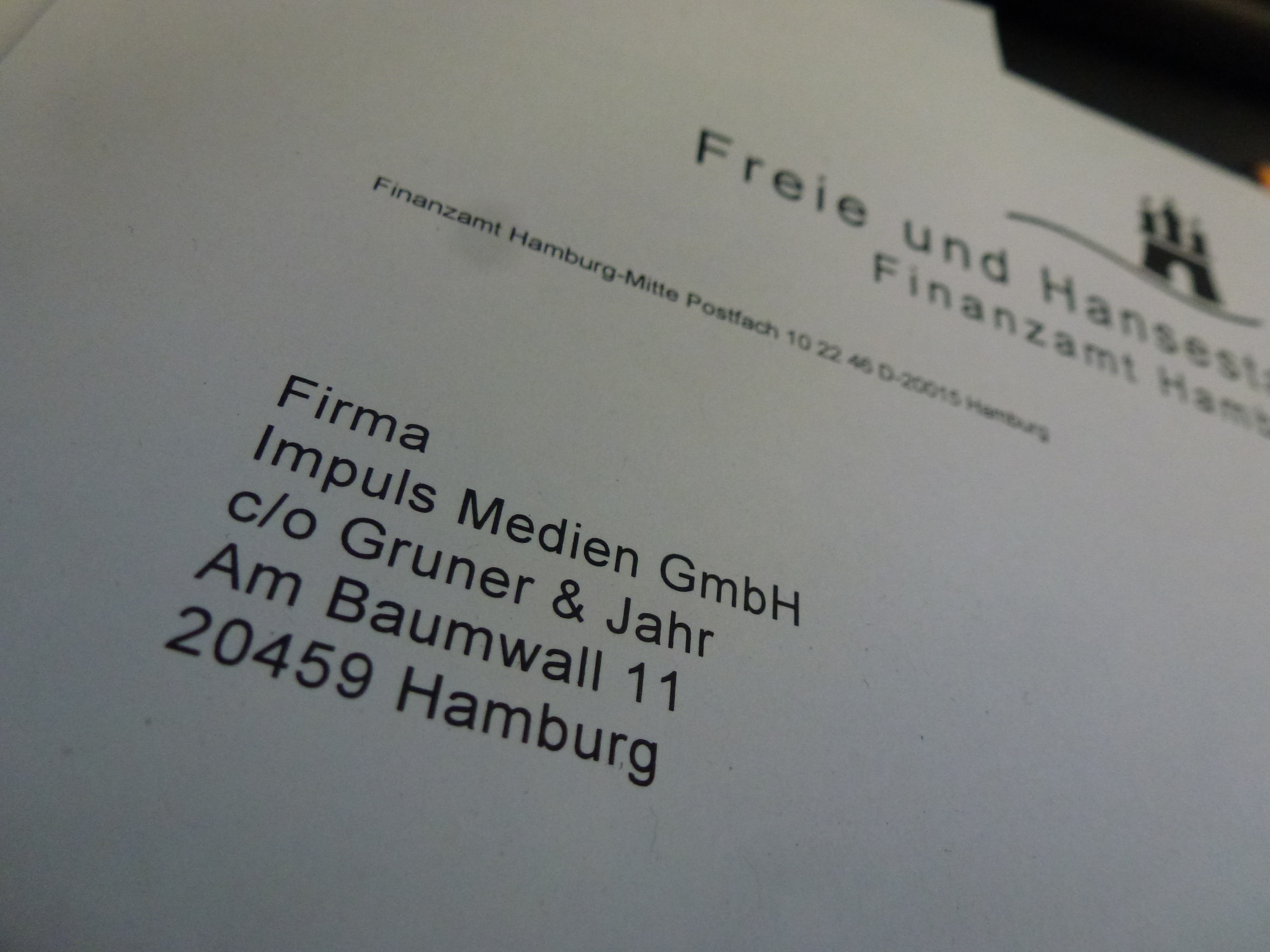 Ich brauche endlich die Umsatzsteueridentifikationsnummer, rufe im Bundeszentralamt für Steuern in Bonn an. Gestern Nachmittag war keiner mehr da. Finanzbeamte fangen morgens offenbar früher an – und machen früher Schluss. Das ist nicht immer kompatibel mit dem Leben von Journalisten – oder Unternehmern. Jetzt aber, es ist noch vor 9 Uhr, muss es klappen. Warteschleife, dann Stille. Ich bin rausgeflogen. Nochmal wählen. Eine Männerstimme auf einem Endlosband. Dann ein Mensch. „Nein, hier sind Sie falsch“, sagt eine Frauenstimme. „Hier kriegen Sie nur die Persönliche Steuer-ID. Ich stelle durch.“ Ein Herr Stegemann meldet sich, sehr freundlich, sagt, „Impulse Medien GmbH“? Nein, „ich habe hier nur eine Impuls Medien GmbH“. Der Rest der Angaben stimmt. Da ist wohl irgendwo – auf den undurchschaubaren Wegen der deutschen Finanzbürokratie – ein „e“ verloren gegangen. Wahnsinn: Zwei Wochen am Markt, und schon ist ein Buchstabe weg. „Das sollten Sie ändern lassen“, rät mir Herr Stegemann. „Da könnten Sie sonst Probleme kriegen, zum Beispiel mit Partnern im Ausland.“ Er selbst kann aber nichts machen, da ist das Finanzamt zuständig. Ich krame den Lohnsteuer-Brief heraus, den mit das Hamburger Finanzamt vor ein paar Tagen geschickt hat – und den ich bislang nur überfliegen konnte (wir produzieren gerade noch das aktuelle Heft..). Und tatsächlich, auch da: Im Briefkopf steht „Impuls Medien GmbH“. Die Sachbearbeiterin im Finanzamt, deren Durchwahl im Briefkopf angegeben wird – nicht die, die ich letzte Woche besucht habe – verweist mich an den Bezirk. Da könne ich mich melden. „Aber bei Ihnen in der Steinstraße wurden die Daten doch eingetragen!“, sage ich. Ja, das könne sein. Aber sie seien dafür nicht mehr zuständig. Das mache der Bezirk. Sie werde den Kollegen aber mal schreiben. Mal sehen, wann das „e“ wieder auftaucht.
