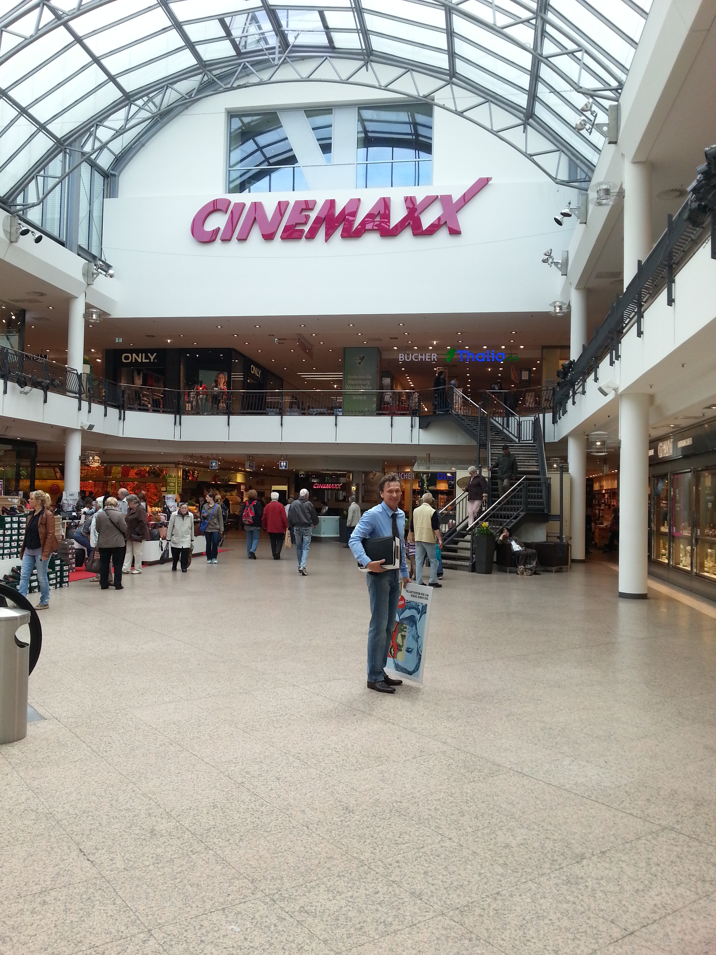 Der Mann, dem ich heute auf Schritt und Tritt folge, von einem Einkaufszentrum zum nächsten, rein ins Parkhaus und wieder raus, heißt Manfred Radssat. Er ist seit vielen Jahren Außendienstler beim Deutschen Pressevertrieb, http://www.dpv.de), der sich auch um impulse kümmert. Auch wenn er auf dem Foto etwas verloren dasteht, Manfred Radssat weiß genau, wo er hinwill.