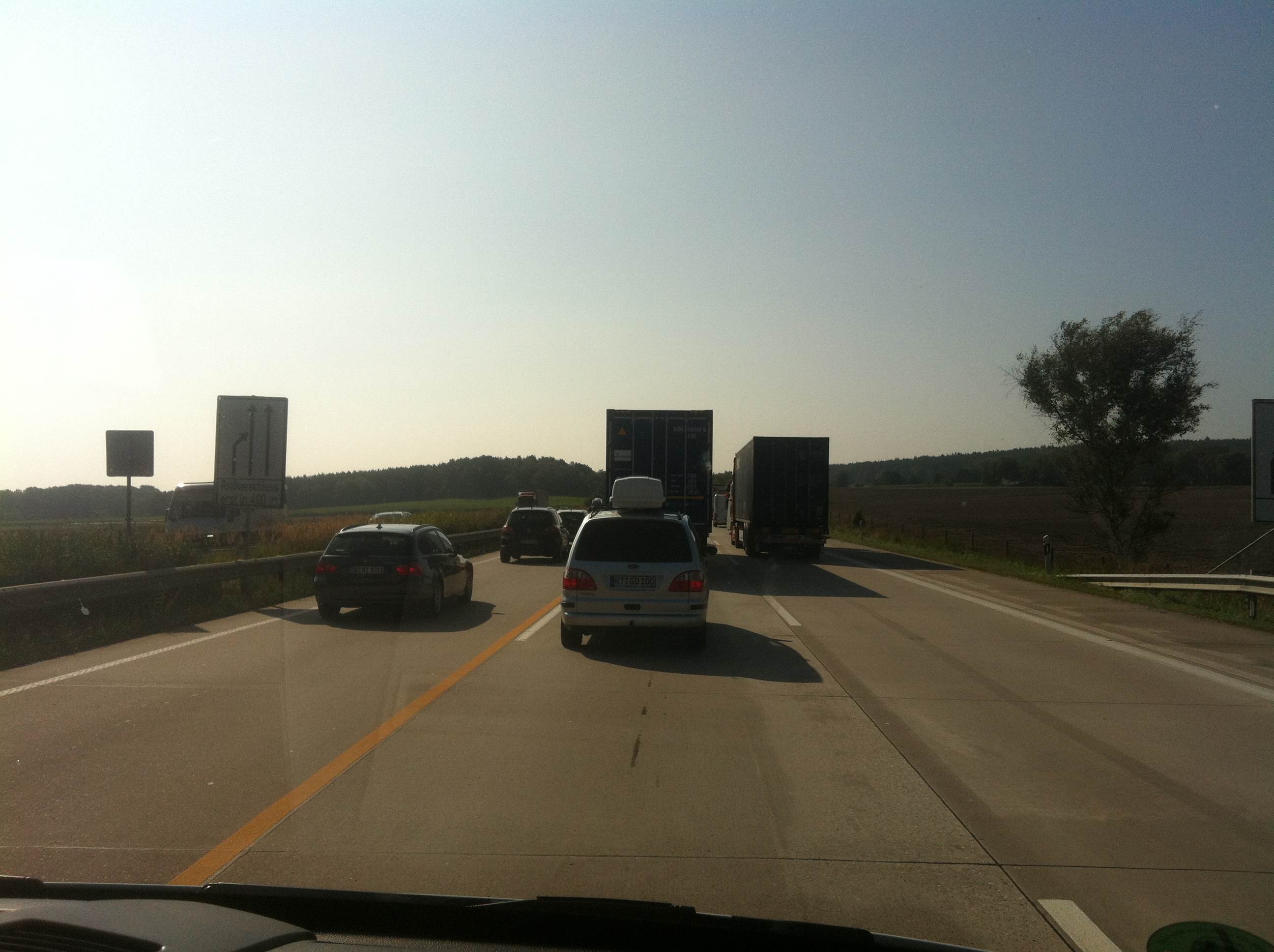 Heute morgen machten sich zwei Kollegen mit der Ladung auf den Weg, 774 Kilometer von Hamburg-Hammerbrook ins feine München (ich stoße morgen dazu). Nach zwei Stunden schickten sie mir die ersten Fotos. Aus dem Stau.