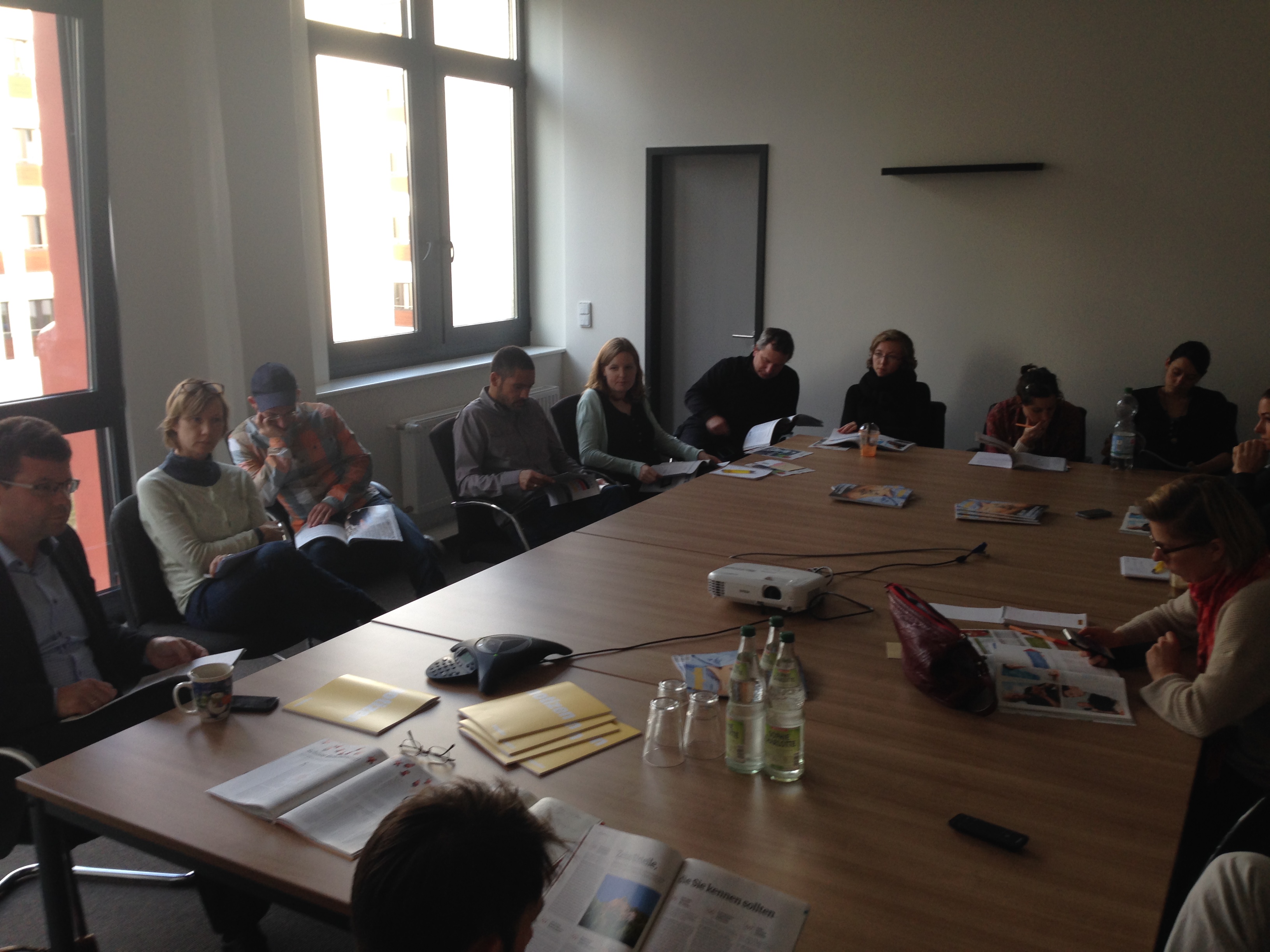 Regelmäßige Leser dieses Blogs kennen dies schon: Alle vier Wochen laden wir einen Unternehmer als externen Blattkritiker nach Hamburg ein, der sich das aktuelle Heft vorknöpft – und uns Feedback gibt. Für den Austausch gilt bei uns nur eine Regel: Es gibt keine Tabus. Und: Wir wollen die Wahrheit hören – egal wie gut oder schlecht das Urteil ausfällt. Heute war Jochen Fürchtenicht bei uns, geschäftsführender Gesellschafter von Wilhelm Leo’s Nachfolger, einer Fachgroßhandlung für Druckweiterverarbeitung in der Nähe von Stuttgart (im Foto ganz links).