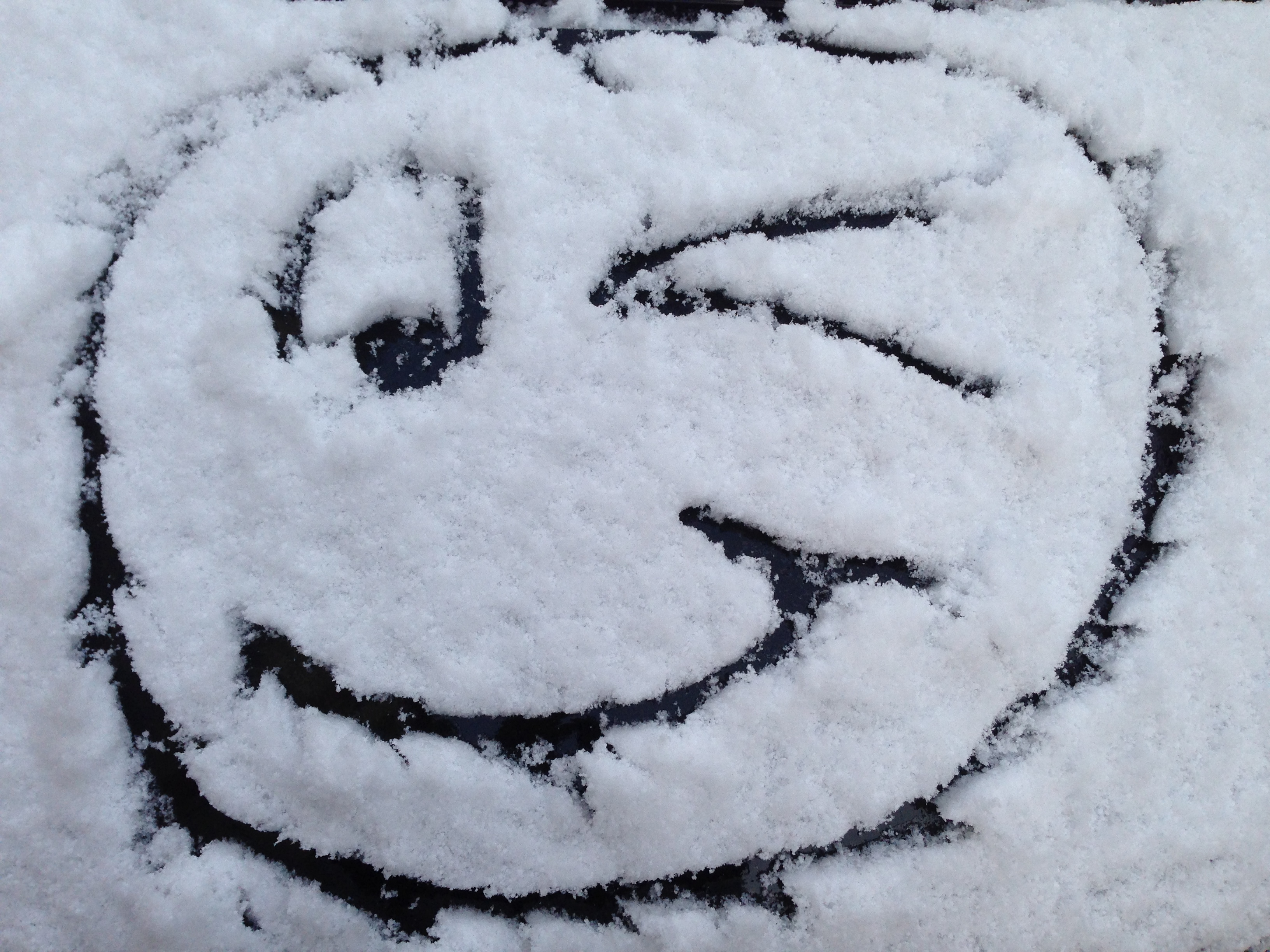 Immerhin: Inzwischen ist hier leichter Schnee gefallen. Die Gelegenheit musste ich nutzen, um eine Idee aus unserem impulse-Adventskalender schon einmal auszuprobieren: „Nutzen Sie Schnee als Werbefläche!“