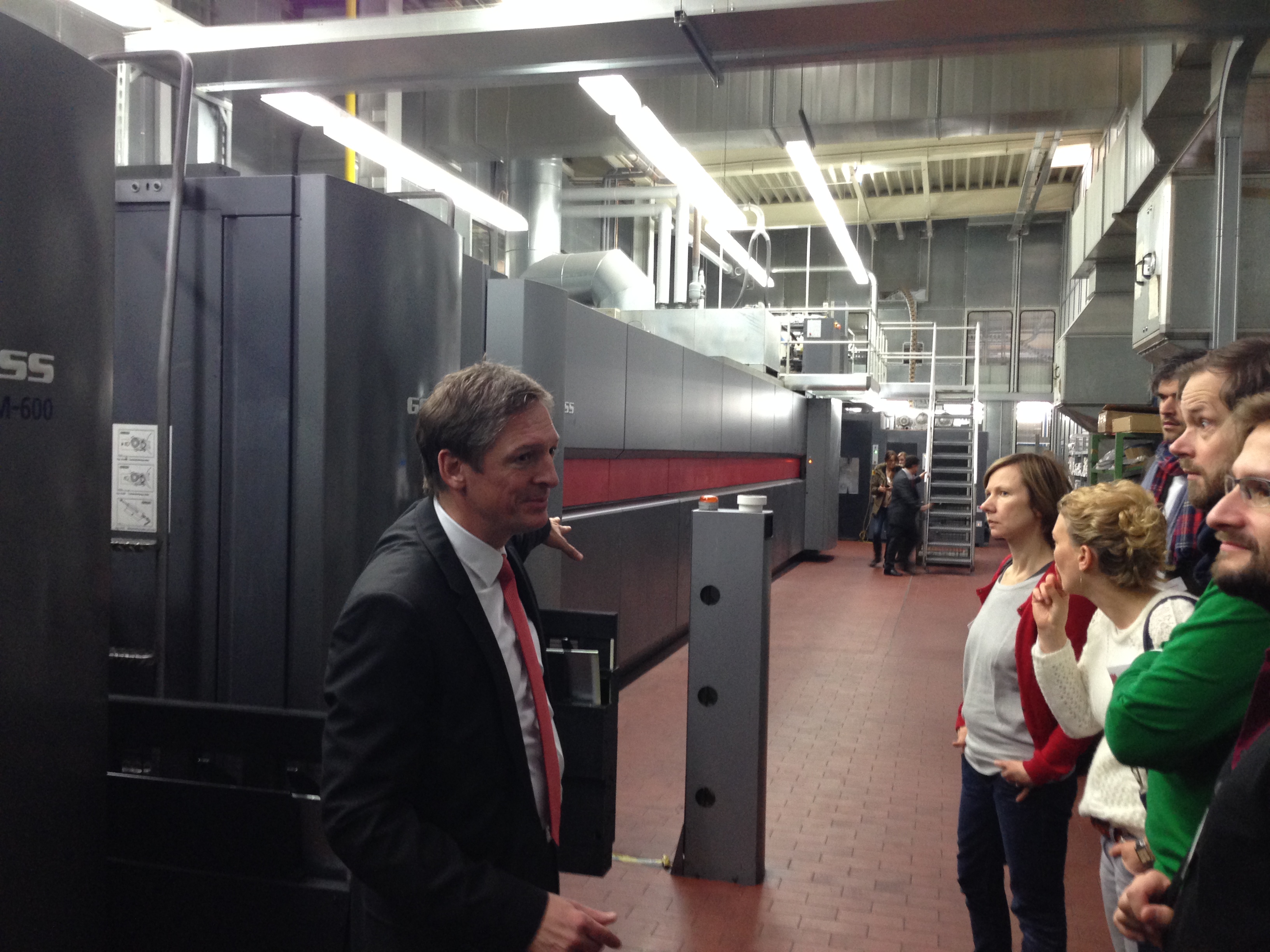 Die geschäftführenden Gesellschafter Andreas Bauer (Foto unten) und Dorothy Stumme sowie ein Kollege führten uns in kleineren Gruppe durch das weitläufige Gelände. Und wir konnten miterleben, wie die aktuelle Ausgabe gedruckt wurde…