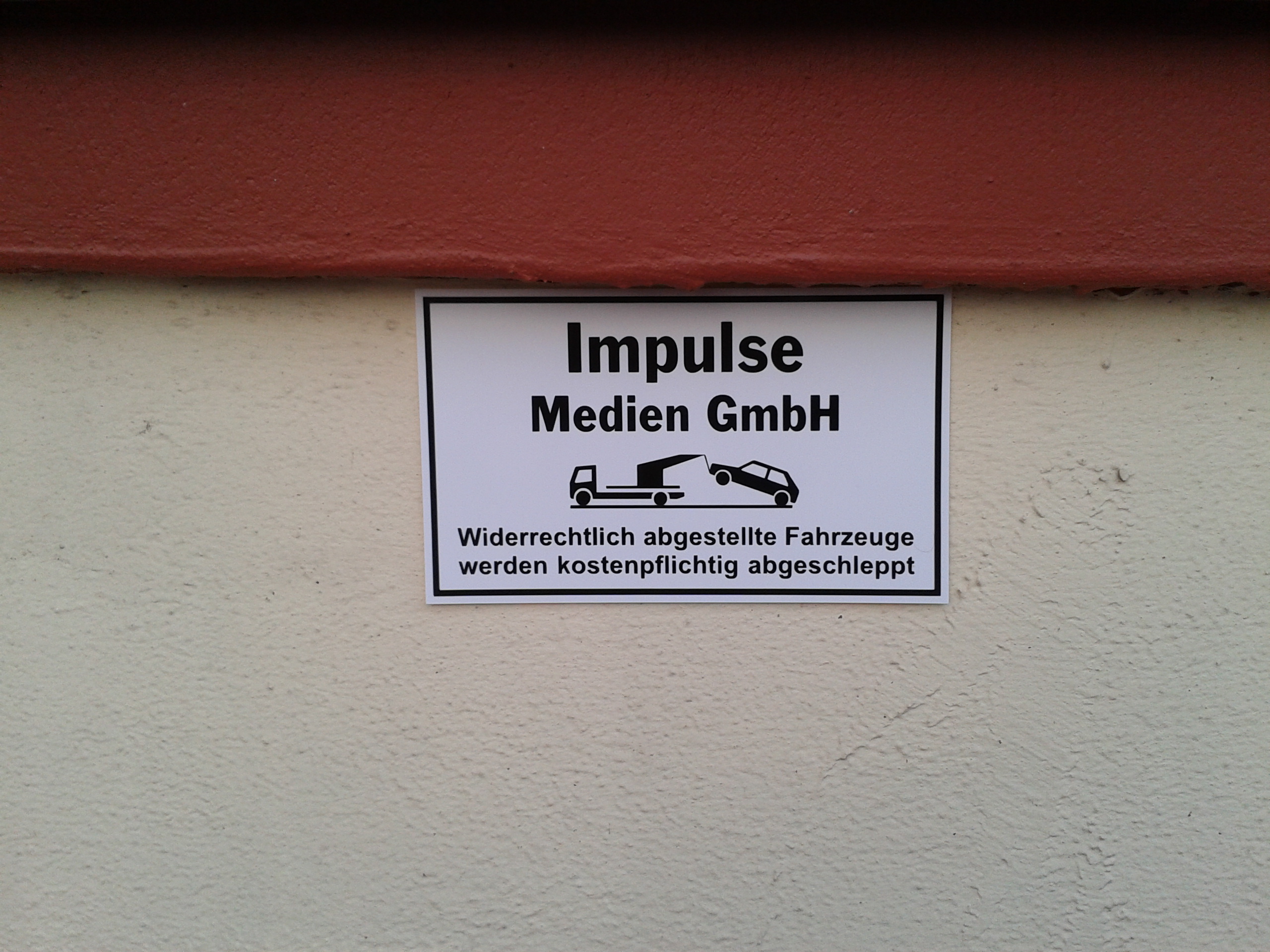 Vor einem Jahr haben wir das noch nicht so ernst genommen. „Falschparker müssen mindestens ein Abo abschließen“, schrieben wir auf das Parkverbotsschild, das eigentlich kein Schild, sondern ein Din-A-4-Blatt in einer Klarsichtfolie war – und sich dementsprechend schnell von der steinernen Wand abreißen ließ. Und genau das geschah: Einige blockierten nicht nur die Plätze, sondern rissen gleich auch die Folien ab (siehe „Was macht man mit dreisten Falschparkern?“ https://impulsemagazin.wordpress.com/2013/09/04/ich-werde-dafur-sorgen-dass-ihr-wagen-am-kran-baumelt/ Und: „Ich werde dafür sorgen, dass Ihr Wagen am Kran baumelt!“ https://impulsemagazin.wordpress.com/2013/09/04/ich-werde-dafur-sorgen-dass-ihr-wagen-am-kran-baumelt/).