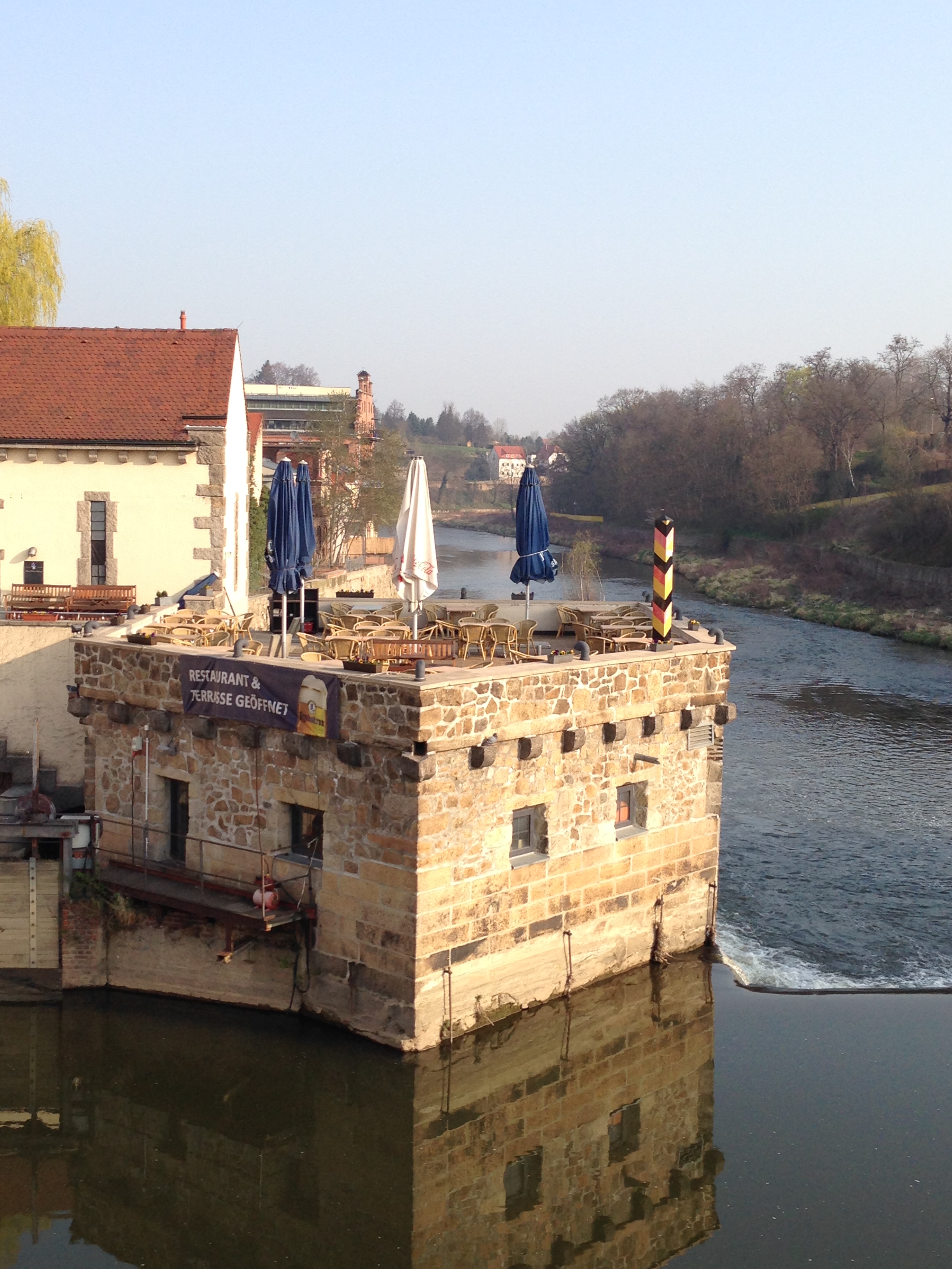 Görlitz, Tag 1 der impulse-Deutschlandtour: Bis zur Grenze, an der Neiße, waren es am Morgen nur wenige hundert Meter. Noch ein Foto von der schwarz-rot-gelben Markierung…