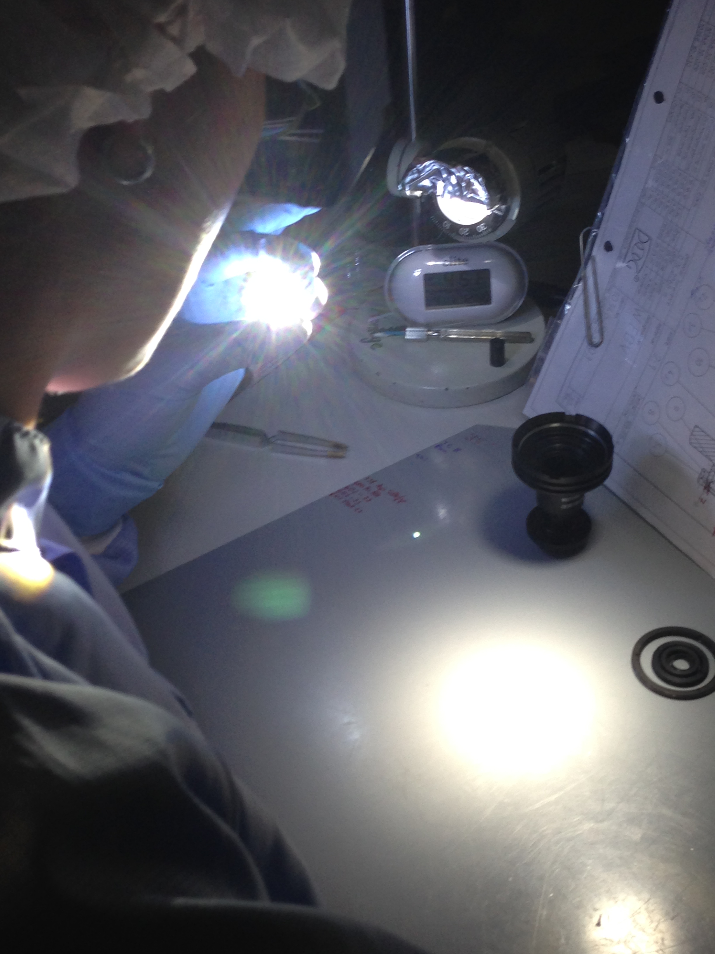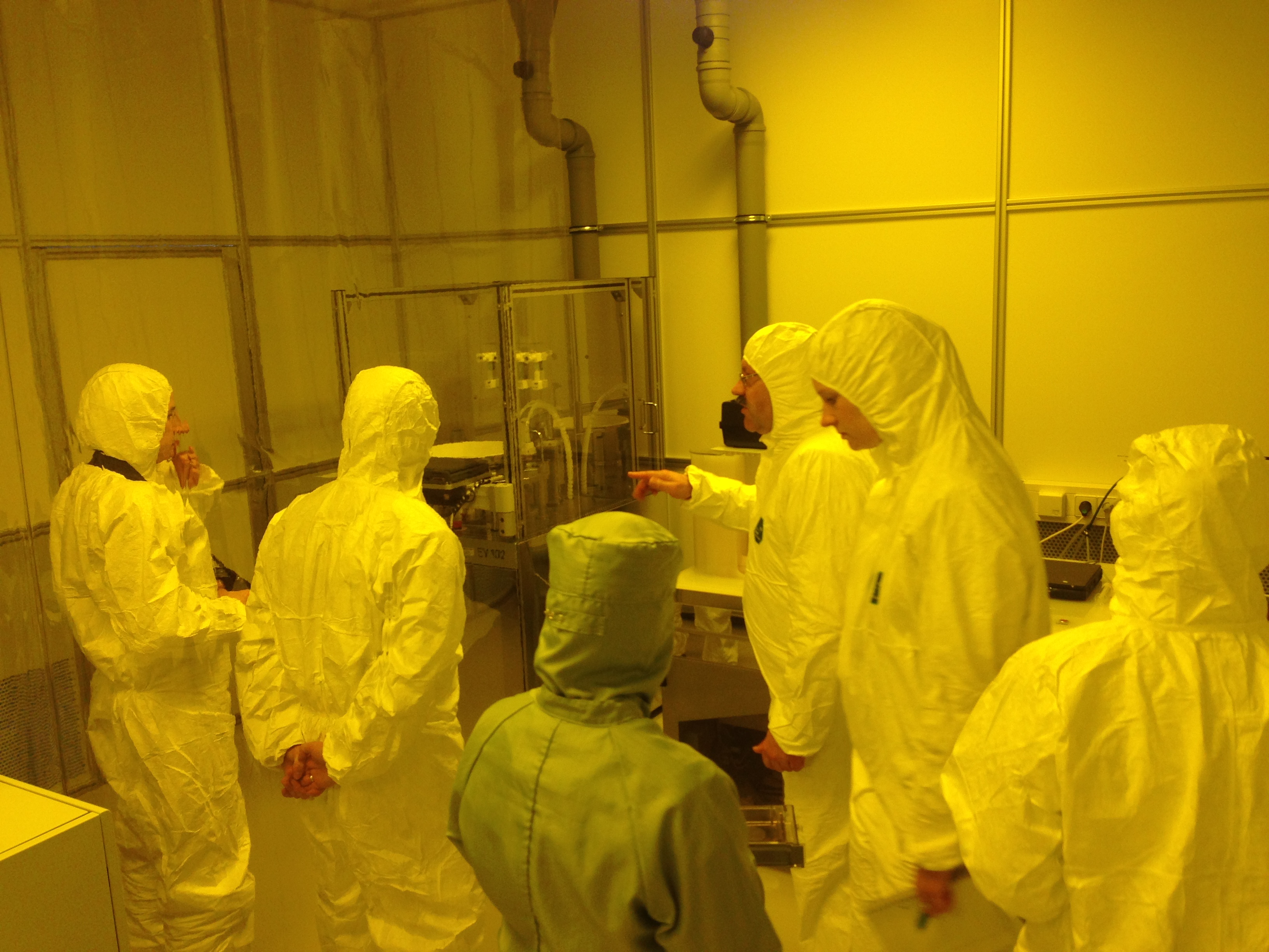 Die optischen Mikrostrukturen werden von den Mitarbeitern unter Gelblicht hergestellt…
