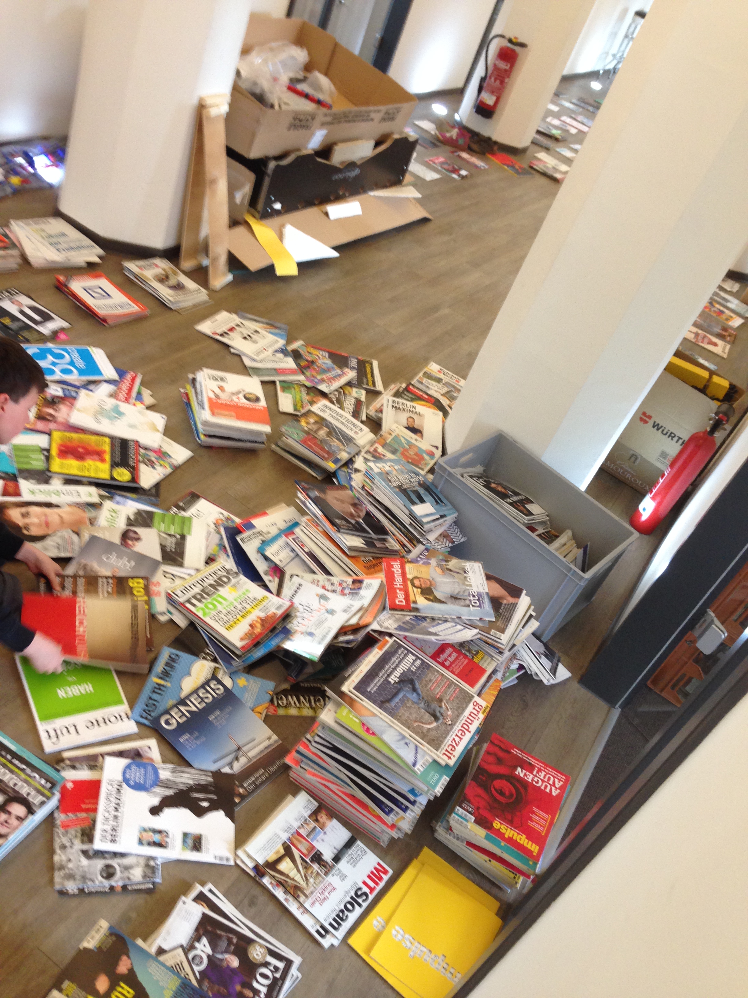 Es sieht bei uns im Verlag aus, als sei eine Bombe explodiert. Dabei räume ich nur auf – und nutze den Sonntag, an dem sich neben der Putztruppe (die es aber nicht in mein Büro schafft) niemand blicken lässt, zum radikalen Ausmisten. Viel, sehr viel Papier muss dran glauben. Es ist wirklich erstaunlich, was man im Laufe der Jahre alles ansammelt.