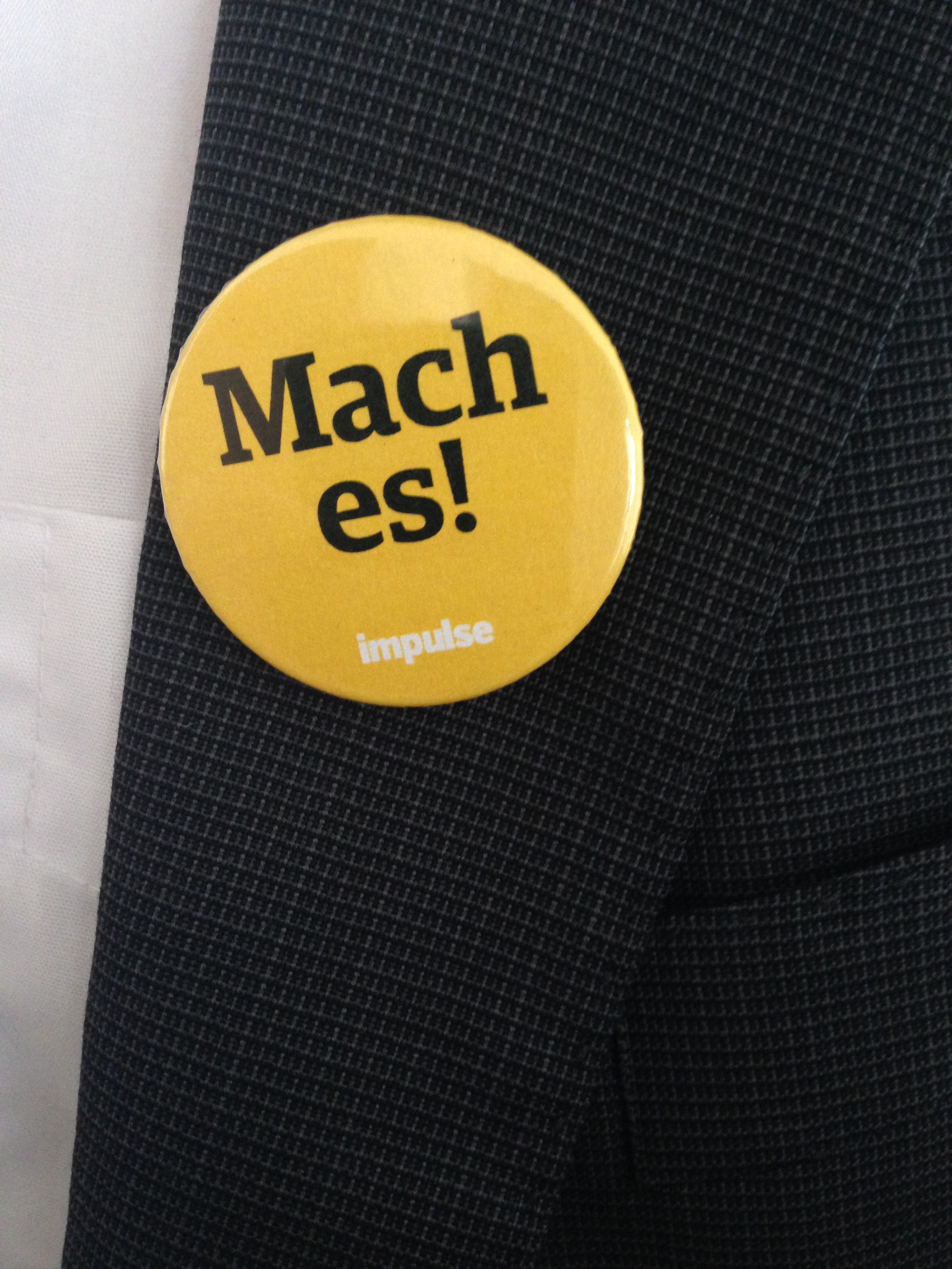 Erstaunlich, wie häufig man angesprochen wird, wenn am Revers ein gelber Button heftet…