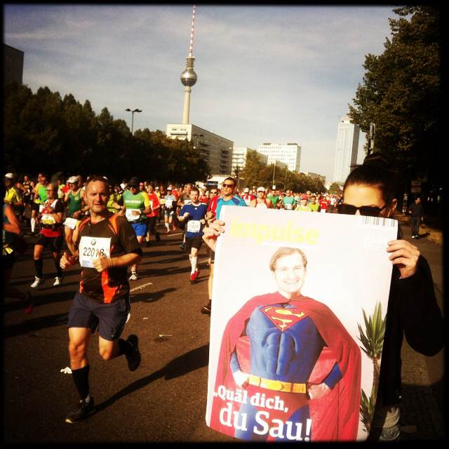 Bevor es in der alltäglichen Hektik ganz untergeht: Ein Kollege ist beim Berlin-Marathon nicht nur über die Ziellinie gekommen, er brauchte zudem weniger als vier Stunden (ein Rätsel, wie man das schaffen kann…) – wahrscheinlich weil er von Kolleginnen mit einem Spezial-Cover angefeuert wurde…